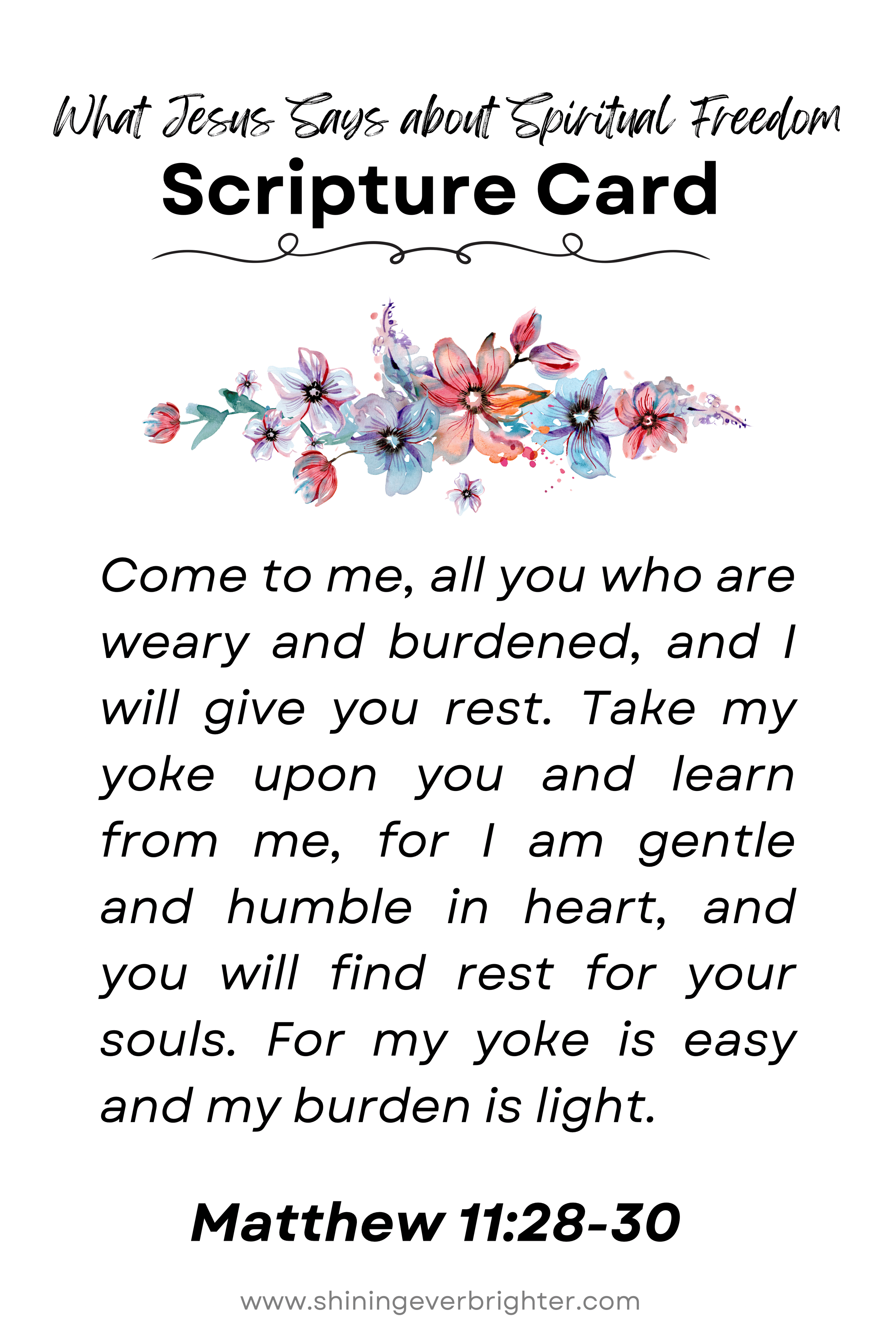Free Printable: What Jesus Says about Spiritual Freedom August 6, 2025 / Shining Ever Brighter Here’s Your Free Printable: What Jesus Says about Spiritual Freedom FAQ Sheet and Scripture Card Printable Download here: What Jesus Says about Freedom FAQ and Scripture Card Sheet.pdf Related